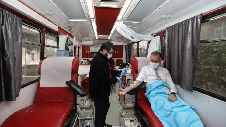 Bu vesileyle vatandaşlarımızı da belediyemiz önündeki kan bağış tırına davet ediyorum” diye konuştu.