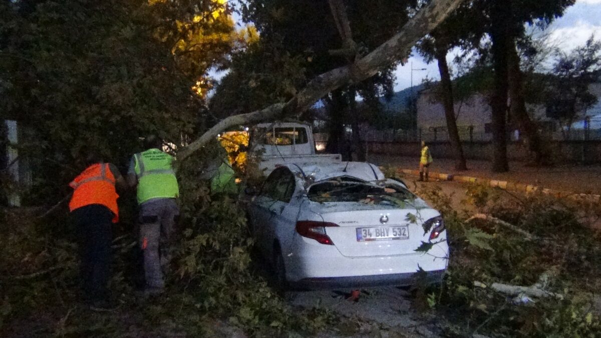 Park halindeki arabanın üzerine ağaç devrildi