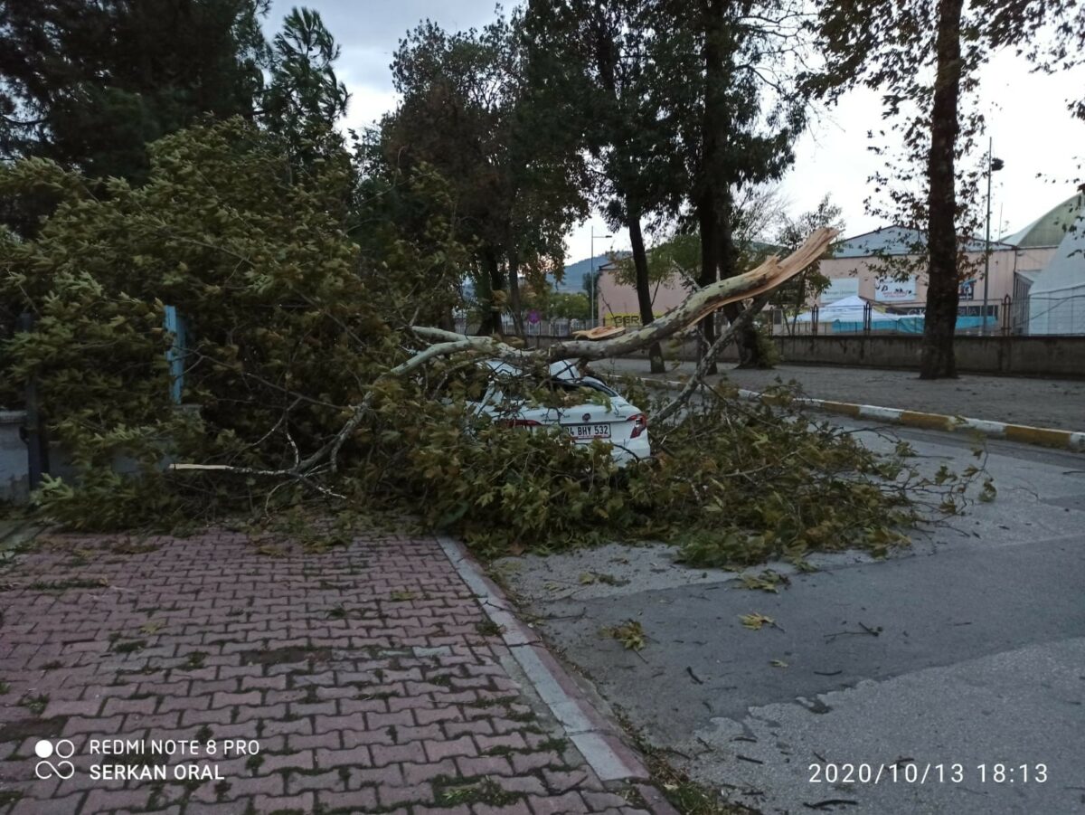 Hamidiye Mahallesinde park halindeki bir otomobilin üzerine ağaç devrildi. O sırada araçta ve yoldan kimsenin geçmemesi büyük bir faciayı önledi. İhbar üzerine olay yerine gelen belediye ekipleri yolu trafiğe kapattı. Devrilen ağaç arabanın üzerinde ekipler tarafından kaldırıldı. Otomobilini o halde gören sürücü ise ne yapacağını şaşırdı. Araçta maddi hasar meydana geldi. İlçe genelinde rüzgar etkisini sürdürüyor.