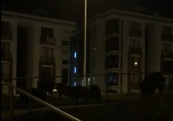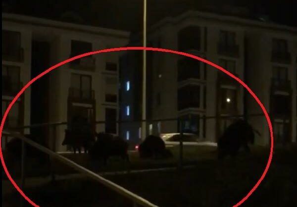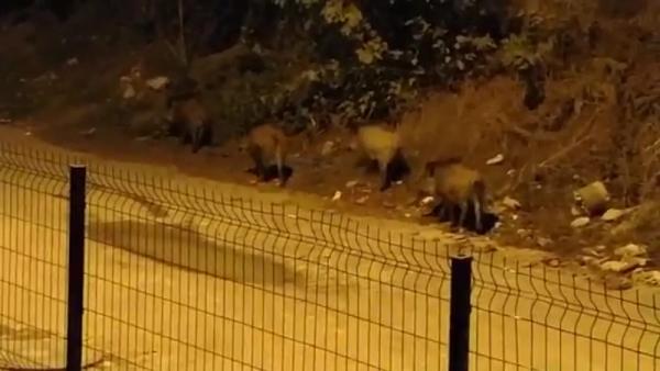 Mudanya kent merkezinde vatandaşlar tarafından dün akşam saatlerinde domuz sürüsü görüldü. Domuzların bir sitenin yakınında, yola çıkarak yiyecek aradı. Ormanlık alanda yiyecek bulamayınca ilçeye indiği tahmin edilen 7 domuz, tedirginliğe neden oldu. O anlar ise bir vatandaşın cep telefonu tarafından görüntülendi.