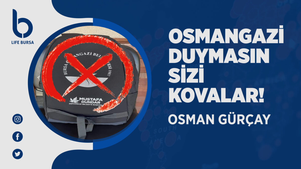 İlkokul çocuklarına verilen çantalara dükkan tabelası gibi koskoca Osmangazi Belediyesi yazılması yetmemiş, onun da altına Mustafa Dündar yazdırıp çocuklara öyle vermişler.