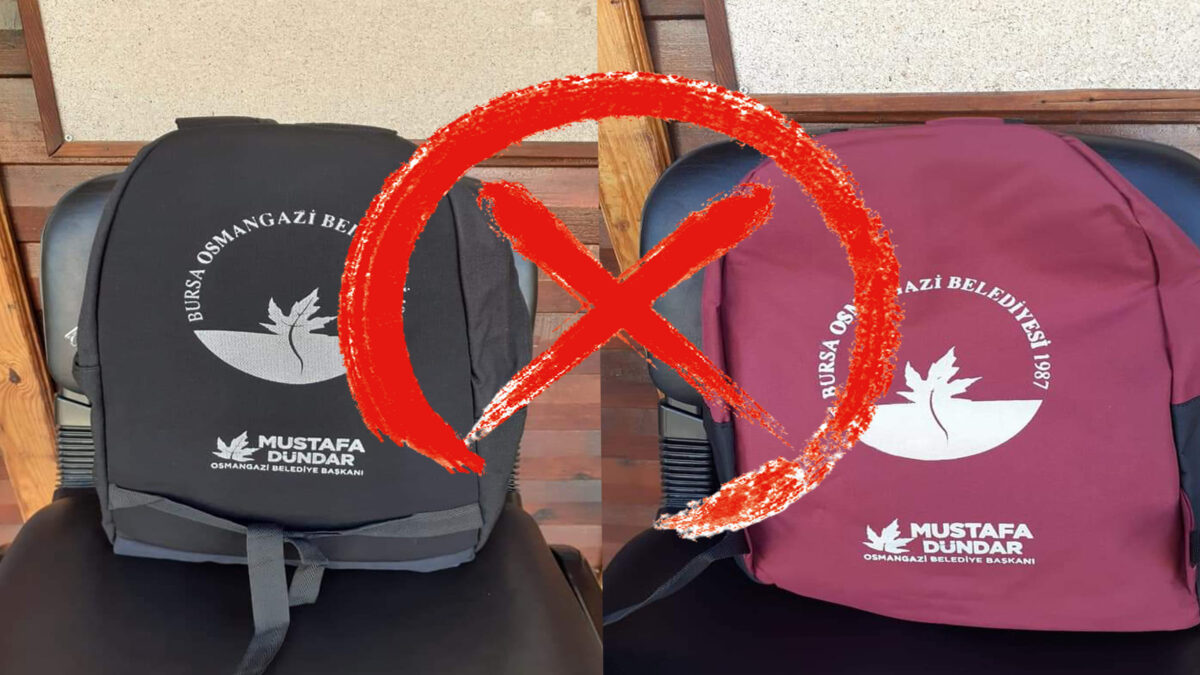 İlkokul çocuklarına verilen çantalara dükkan tabelası gibi koskoca Osmangazi Belediyesi yazılması yetmemiş, onun da altına Mustafa Dündar yazdırıp çocuklara öyle vermişler.