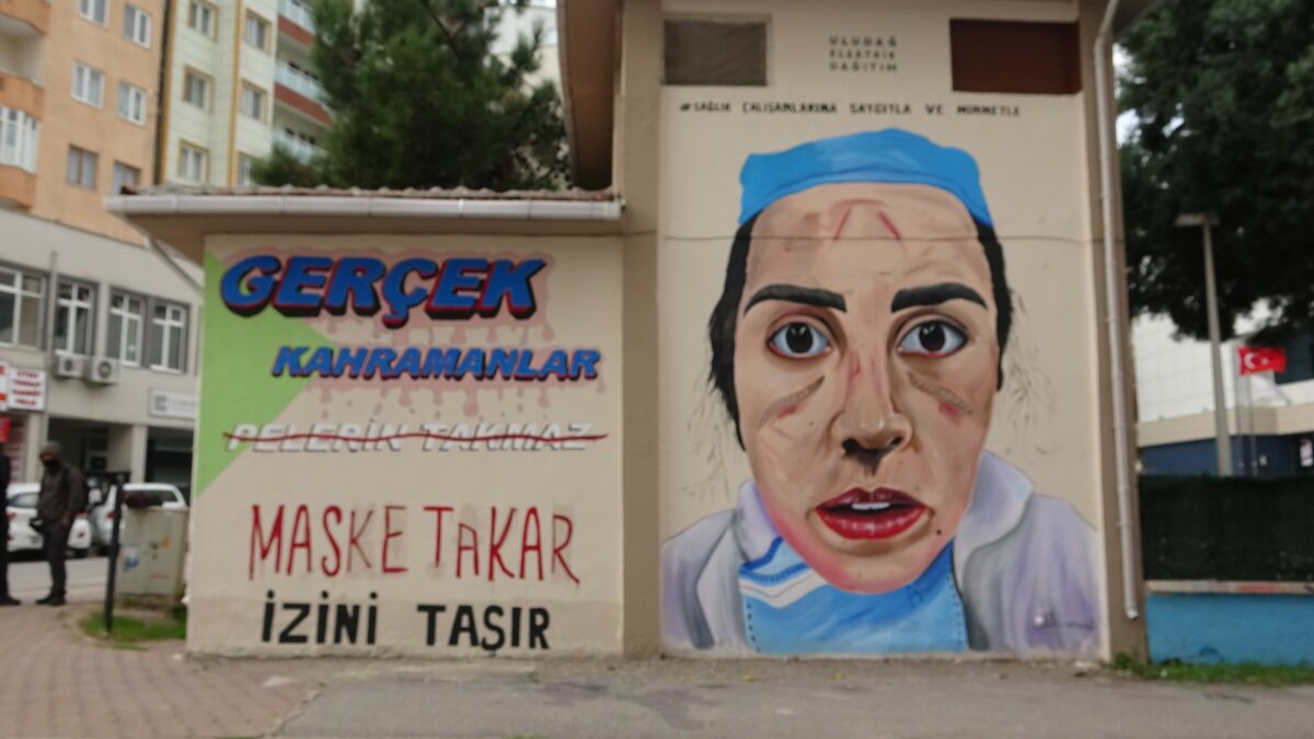 Bursa, Balıkesir, Çanakkale ve Yalova’da milyonun üzerinde nüfusa elektrik dağıtım hizmeti veren Uludağ Elektrik Dağıtım A.Ş. (UEDAŞ), sağlık çalışanlarının korona virüs sürecindeki mücadelesine dikkat çekti. Daha önce maske kullanma ve sosyal mesafeye dikkat çeken UEDAŞ, bu defa Nilüfer ilçesindeki trafoyu sağlık çalışanlarının yorgunluğunu belirten bir çalışmayla boyadı. Çalışmada yoğun maske kullanımından dolayı yüzünde yaralar oluşmuş bir sağlık çalışanı resmedildi.