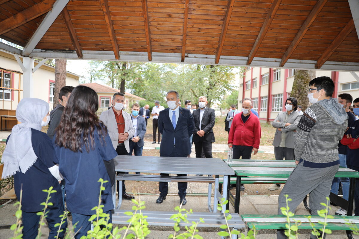 Bursa Ziraat Mektebi’ndeki çalışmaları yerinde inceleyen Bursa Büyükşehir Belediye Başkanı Alinur Aktaş, yetkililerle birlikte okulu gezerek ihtiyaçlar ve eksiklikler hakkında bilgi aldı. Yüz yüze eğitimin başladığı okulda sınıfları gezen Başkan Alinur Aktaş, öğrencilerle de sohbet etti. Bursa’nın eğitim ve tarım alanında önemli bir yeri olan Ziraat Mektebi’ndeki restorasyon çalışmalarını yerinde görerek bilgi aldıklarını belirten Başkan Aktaş, “Ziraat Mektebi’nin Bursa tarihinde çok önemli bir yeri var. Okulumuz üç ayrı yapıdan oluşuyor. Yaklaşık 550 öğrenci, 50 civarında öğretmen ve idareciyle okulumuz, şehrin tarım ve hayvancılık alanındaki önemli bir boşluğu dolduruyor. Okul ve Milli Eğitim Müdürlüğü’nden aldığımız bilgiler doğrultusunda Bursa Valiliği’nin destekleriyle çalışmalar hızlı bir şekilde sürüyor. Toplam 4126 metrekarelik alana sahip olan okulda, çalışmalar önümüzdeki yılsonuna doğru bitirmiş olacağız. Yaklaşık 7 milyon 800 bin civarında restorasyon bedeli ve 2 buçuk milyon civarında çevre düzenlemesi ile beraber toplam 10 milyon 300 bin lira TL civarında para harcanacak” dedi.