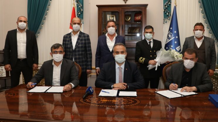Konuşmaların ardından Başkan Alinur Aktaş, BURULAŞ Genel Müdürü Mehmet Kürşat Çapar ve Sendika Genel Başkanı İrfan Mete, toplu iş sözleşmesine imzalarını attı. Günün anısına Mete tarafından Başkan Aktaş’a çiçek ve Türk bayrağı takdim edildi.