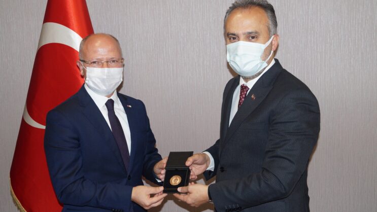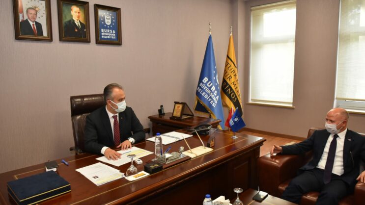Türk Kızılay Bursa Şube Başkanı Davut Gürkan, beraberinde yönetim kurulu üyeleri ile birlikte Kızılay Haftası faaliyetleri kapsamında Büyükşehir Belediye Başkanı Alinur Aktaş’ı ziyaret ederek, Türk Kızılay’ın faaliyetlerini ve şubelerinin çalışmalarını anlattı.