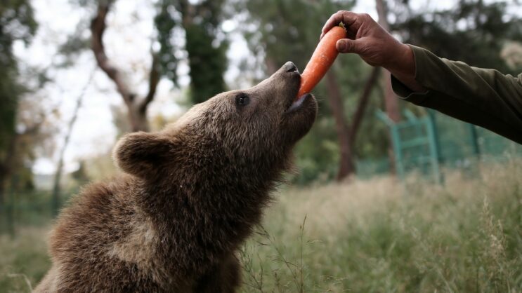 Türkiye’nin çeşitli yerlerinden 5 yavru ayı Karacabey Ovakorusu Ayı Barınağına getirildi. Yavru ayılar, taptaze meyve ve sebzeleri her gün bakıcılarının elinden yiyor.