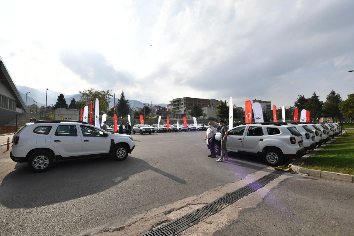 Osmangazi Belediyesi, korona virüs ile mücadelede önemli bir görev üstlenen filyasyon ekiplerinin kullanması için Bursa İl Sağlık Müdürlüğü’ne 30 adet araç tahsis etti. Osmangazi Belediye Başkanı Mustafa Dündar, yeni araçların anahtarını İl Sağlık Müdürü Dr. Fevzi Yavuzyılmaz’a teslim etti.