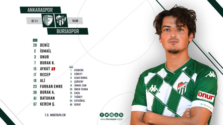 Bursaspor Teknik Direktörü Mustafa Er sahaya Deniz Aydın, İsmail Çokçalış, Onur Atasayar, Aykut Akgün, Furkan Emre Ünver, Burak Altıparmak, Batuhan Kör, Recep Aydın, Kerem Şen, Burak Kapacak ve Ali Akman‘dan oluşan ilk 11’i sürecek.