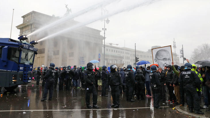 Koronavirüs önlemlerine karşı çıkanlar başkent Berlin sokaklarında polisle çatıştı, polisin tazyikli suyun kullandığı olaylarda gözaltılar var.