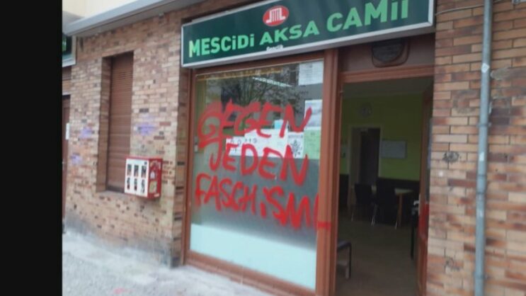 Avrupa’da camilere yönelik çirkin saldırılar devam ediyor. Almanya’nın başkenti Berlin’de bulunan ve 1990 yılından bu yana Berlinli Müslümanlara hizmet veren Mescid-i Aksa Cami’nin duvarlarına sprey boya ile yazı yazıldı. Kimliği belirsiz kişilerce gece yarısı düzenlenen saldırıyı, sabah namazına gelen cemaat fark ederek polise haber verdi. Diyanet İşleri Başkanlığına bağlı olan caminin kantin camına “Her türlü faşizme karşı” ifadeleri Almanca olarak yazıldı.