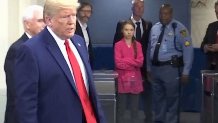 Trump, geçen yıl BM Genel Kurulu çerçevesinde İklim Zirvesi’nde dünya liderlerine kafa tutan konuşması kadar yolları kesiştiğinde kendisine attığı öfke dolu bakışla da gündem olan iklim aktivistine hitaben şu tweeti atmıştı: