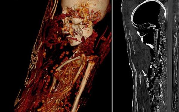 Bilimadamlarının bilgisayarlı tomografi ile incelediği mumyaların tüm organlarıyla birlikte mücevher ve altın sikkelerle gömüldükleri ortaya çıktı. Araştırmacılar, incelemelere göre, söz konusu üç kişinin de sağlık problemleri nedeniyle erken yaşta öldüklerini belirtti.