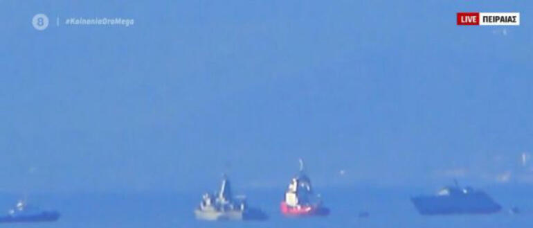 Yunan televizyon kanalları canlı yayına geçerken, geminin sulara gömülmesi anbean izlendi.