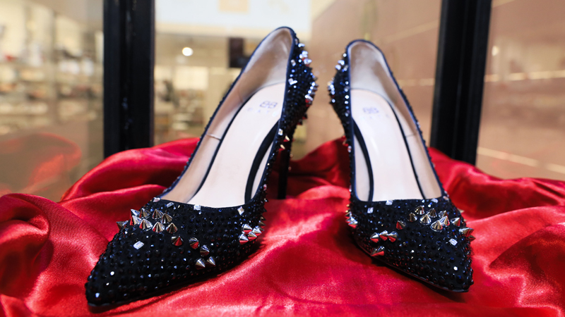 Antalya’da bir fuarda sergilenen ve üzerinde değerli taşlar bulunan topuklu kadın ayakkabısı, 104 bin TL’ye alıcı buldu.