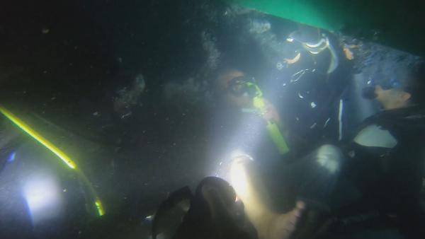 Samatya Sahili açıklarında batan balıkçı teknesinin içinde kalan bir balıkçının kurtarılma anı onu kurtaran dalgıç polislerce görüntülendi.