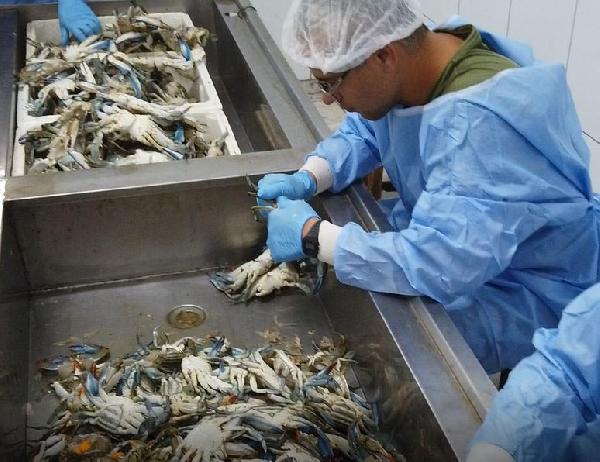 Daha çok erkek mavi yengeç avlanıyor. Balıkçılar, daha lezzetli olmasına rağmen, yakaladıkları erkeğe göre daha küçük boyda, sarımsı ve kıskaçları kırmızı olan dişi mavi yengeçleri, üreyip nesillerinin devam etmesini sağlamak için suya geri atıyor.