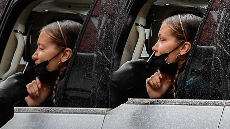 Süper model Bella Hadid, New York’ta ünlü bir markanın çekimlerine girmeden önce arabasının içinde corona virüs testinden geçti.