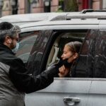 Aracının penceresinden uzanarak test yaptıran 24 yaşındaki modelin zor anları objektiflere takıldı.