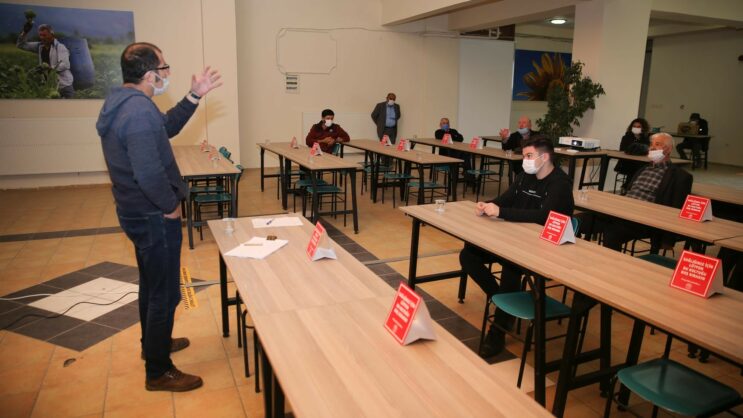 Nilüfer Belediyesi bu amaçla Akçalar Mahallesi’nde hayata geçirdiği Çiftçi Evi’nde, ürün çeşitliliğini ve verimini artırmak amacıyla çiftçilere yönelik eğitimler düzenlemeye başladı. Çevre Koruma ve Kontrol Müdürlüğü tarafından organize edilen ve Akçalar Mahallesi’ndeki çiftçilerin katıldığı ilk eğitim, pandemi nedeniyle sınırlı sayıda katılım ve önlemler altında gerçekleştirildi.