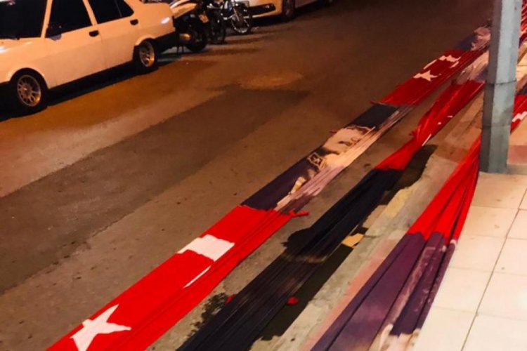 Bayram etkinlikleri kapsamında dolaştırılması planlanan yüzlerce metre uzunluğunda, üzerinde Atatürk posterlerinin de bulunduğu Türk bayrağının cadde boyunca yere serilmesi ve üzerlerinden araçların geçtiği görüntüler üzerine adli ve idari soruşturma başlatıldı.