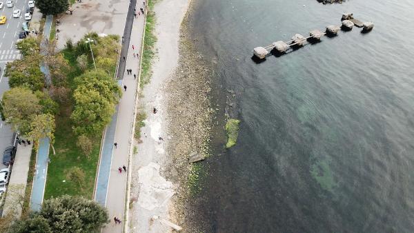 İstanbul Kadıköy’de sahillerde deniz suyunun çekilerek kayalıkların ortaya çıktığını gören vatandaşlar tedirgin oldu.
