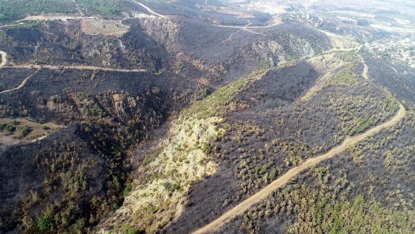 Hatay’da, cuma günü başlayan ve 2 günde kontrol altına alınabilen orman yangınında, alevlerin sardığı bölgeler, havadan görüntülendi.