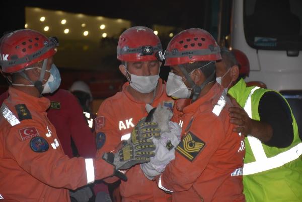 Bayraklı ilçesindeki Rıza Bey Apartmanı’nın çökmesiyle enkaz altında kalan kedi, arama-kurtarma ekiplerince fark edildi. Yıkılan duvarları kırarak hayvana ulaşan ekipler, kediyi enkazdan çıkardı. Enkazdan kurtarılan kedi, veteriner hekimlere teslim edildi.