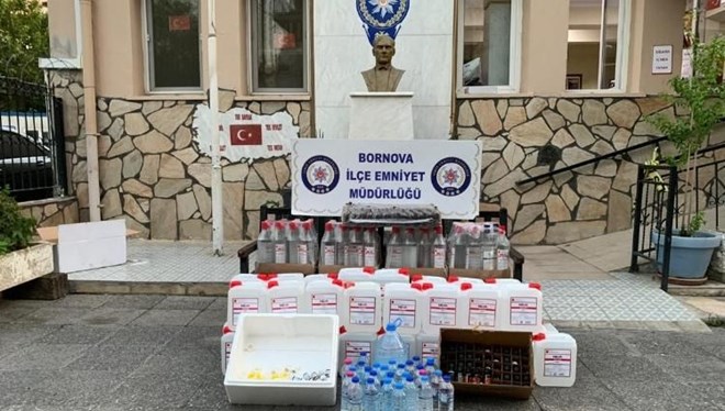 İzmir’in Bornova ilçesinde, bir kokoreççi dükkanına yapılan baskında, yaklaşık 230 litre etil alkol ile 20 litre sahte içki ele geçirildi.