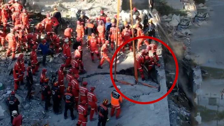 İzmir’deki depremin ardından Rıza Bey Apartman’ındaki enkaz çalışmalarında felaketin eşiğinden dönüldü. Beton blokta göçük oluşunca 3 kişi boşluğa düştü.