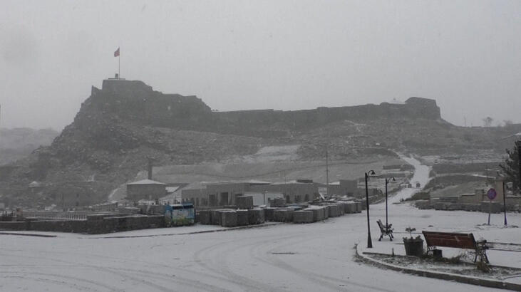 Hava sıcaklığının hissedilir derece de düştüğü Kars beyaz gelinliğini giyerken, kent merkezine de mevsimin ilk karı yağmış oldu.