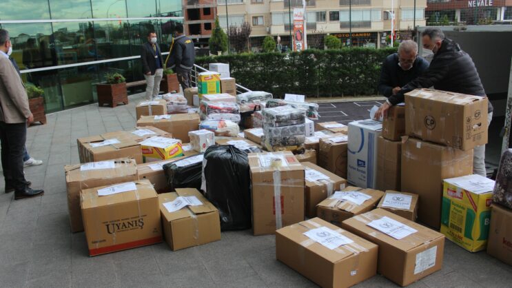 Minik kalpler ve aileleri, battaniyeden dezenfektana, maskeden kıyafete kadar 10 bine yakın ürünü kargo ile İzmir’e gönderdi.