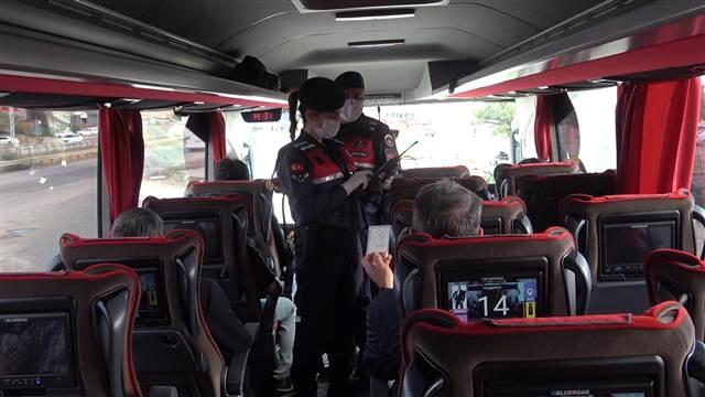 Şehir içi toplu taşımalarda yolculuk eden vatandaşların da kontrolleri İSDEM ekiplerince yapıldı. Jandarma ekipleri tarafından durdurulan otobüslerin sürücülerinin evrakları incelendi. Ayrıca, araçlarda hijyen denetimi yapan ekipler, yolcular ve sürücülerin maske kuralına uyup uymadıklarını da kontrol etti. Yolcuların maske ve mesafe kuralına uydukları görüldü.
