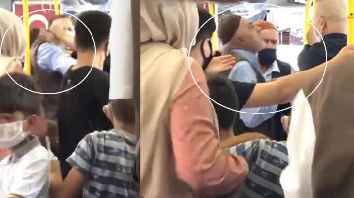 Kağıthane’de yolcu dolu olan bir halk otobüsünde oturan kadın, maskesini yarım takan ayaktaki yaşlı adama tokat attı. Ortalığın bir anda karıştığı kavgada adam kadına tükürükle karşılık verirken, yaşananlar ise kameralara yansıdı.