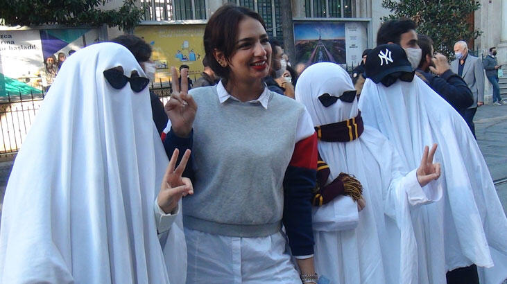 Taksim Meydanında ve İstiklal Caddesi’nde bir anda hayalet kostümleriyle ortaya çıkan kadınlar ilgi odağı oldu. Yerli ve yabancı ziyaretçiler, kadınlarla fotoğraf çektirmek için adeta sıraya girdi. Bir esnaf ise kostümlü 3 kadın için, “Korona kovucu bunlar” yorumunda bulundu.