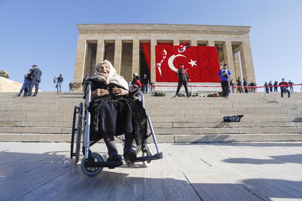 Tekerlekli sandalye ile Anıtkabir’i ziyarete gelen 87 yaşındaki Gülten Gönen ise vatandaşların ilgi odağı oldu. Elindeki Türk bayrağı ve Atatürk posteri ile poz veren Gönen, babası Gazi Cemal Gönen’in Atatürk’ün emir eri olduğunu belirterek, her yıl 10 Kasım’da Anıtkabir’e geldiğini söyledi.