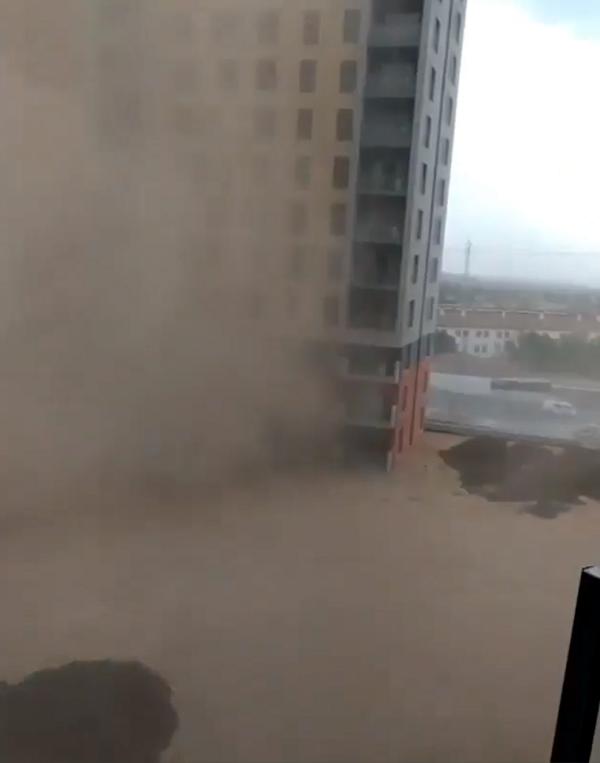 Antalya’da, rüzgarla birlikte kent merkezinin bazı noktalarında toz bulutu oluştu.