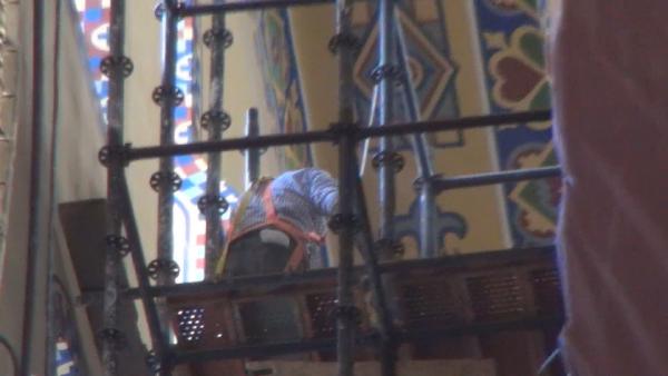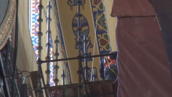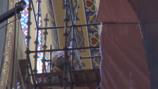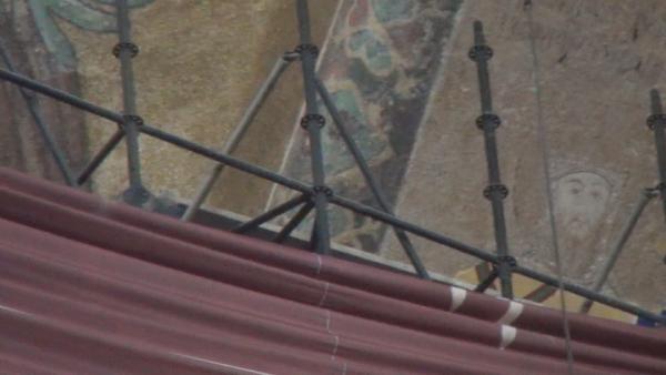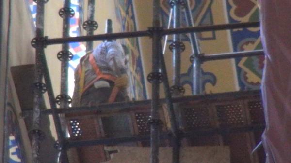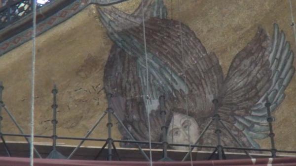 Ayasofya Camii’nde 7 yıldır bulunan dev iskele sökülmeye başlandı. Uzun yıllardır dev iskelelerin kapattığı ‘Serafim Melekleri’nden biri de görülmeye başlandı.
