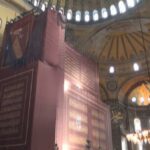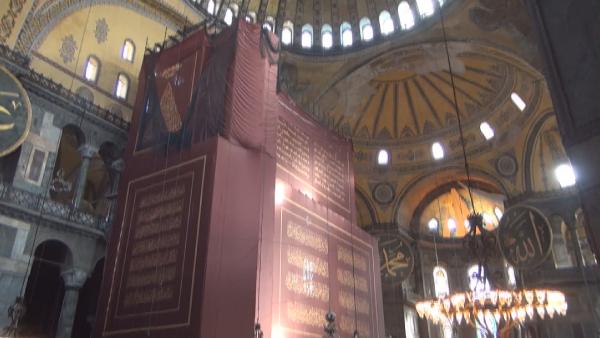 Uzun yıllar müze olarak kullanılan ve 86 yıl sonra, 24 Temmuz’da ibadete açılan Ayasofya-i Kebir Cami-i Şerifi’nde bulunan dev iskele sökülüyor. 1993’te ana kubbe onarımı için kurulup 17 yıl kullanılan iskele İstanbul’un 2010 yılında Kültür Başkenti olması üzerine bakanlık talimatıyla kaldırılmıştı. Ancak dev iskele, 3 yıl sonra yeniden kuruldu. Bu defa iç duvarların onarımı için kurulan iskeleler, proje süresi 650 gün olmasına rağmen 2013’ten bu yana Ayasofya’da varlığını sürdürüyordu. İskelenin sökülmesi için, camide çalışmalar başladı. İşçiler iskeleyi üst kısımdan başlayarak yavaş yavaş söküyor. Camide bir yandan da ziyaret ve ibadet sürüyor. Öte yandan iskelenin bir kısmının sökülmesi ile birlikte, uzun yıllardır dev iskelelerin kapattığı ‘Serafim Melekleri’nden biri de görülmeye başlandı.