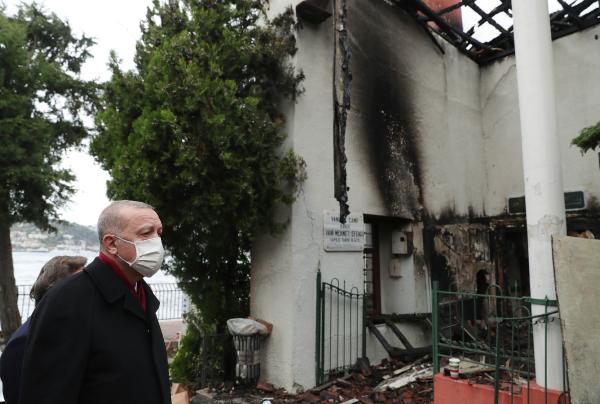 Cumhurbaşkanı Recep Tayyip Erdoğan, çıkan yangında kullanılamaz hale gelen Vaniköy Camii’ni ziyaret etti.