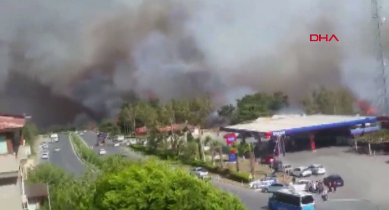 Kontrol altına alınamadı, devam ediyor. 4-5 kilometrelik alanı kapladı. Az ilerimizde yüksek meslek okulu var, onun atölyesine sıçradı. İtfaiyeler, helikopterler çalışıyor ama henüz kontrol altına alınamadı. Yaralı falan yok ama evlere çok az kaldı, yetişmek üzere. Kalabalık bir mahalle. 6-7 siteden oluşuyor. Ormanın kenarında oluyor. Dolayısıyla yangın her an evlere sıçrayabilir. Rüzgar şiddetli devam ediyor. Elektrik tellerinin yere düşmesi nedeniyle yanmaya başladı. Ormanın içi kontrol altına alınamıyor. Arkadaşlar sürekli çalışıyorlar. Havadan da 2-3 helikopter müdahale ediyor.