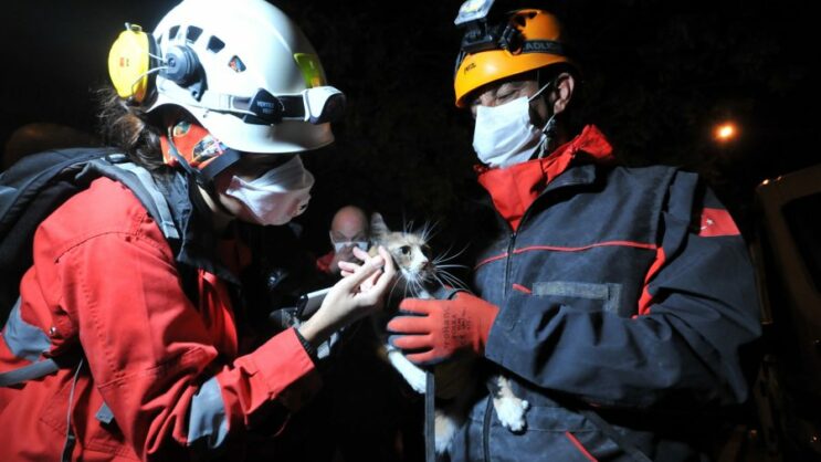Kediyi enkazdan çıkaran AKUT görevlisi, “Her can bizim için önemli. Biz insan ararken kediyi bulduk. Yıkım tehlikesinden dolayı riskli bir binadayız ama kediyi orada bırakıp çıkamazdık. Kediyi alıp enkazdan çıkardık. K-9 köpeğimizin ismi ‘Bob’ ve bir arama köpeği” dedi.
