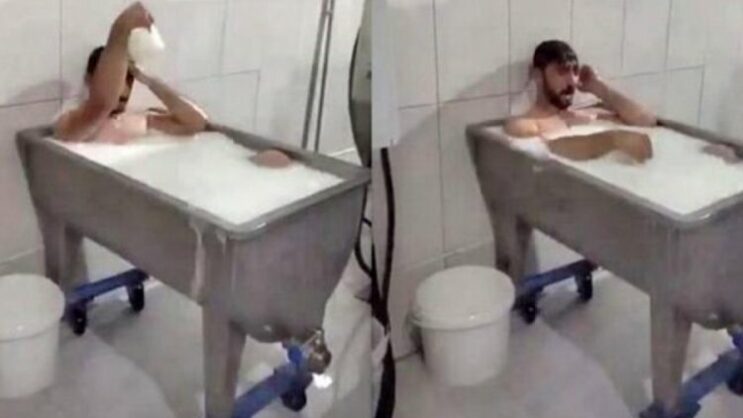 Konya’dan Türkiye’ye yayılan görüntülerde süt teknesi içinde banyo yaptığı görülen Emre Sayar ifadesinde olayı şöyle anlattı: ‘Bu işyerinde 4 aydır çalışıyorum. O gün süt toplama merkezindeki soğutma tanklarını temizliyordum. Depo görevlisi Uğur Turgut yanıma gelerek ‘Dezenfektan kazanının içine gir de bir video çekelim’ dedi. Önce kabul etmedim ancak Uğur ile samimi olduğumuz için kabul ettim.