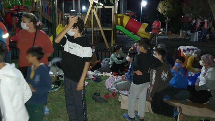 Ege Denizi’nde meydana gelen 6.6 şiddetindeki depremin ardından büyük korku yaşayan Kuşadalılar, artçı sarsıntıların devam etmesiyle birlikte gece boyunca evlerine girmedi. Geceyi sokakta geçiren Kuşadalılar için Aydın Büyükşehir Belediyesi ile Kuşadası Belediyesi çadırlar kurup, sıcak çorba dağıttı.