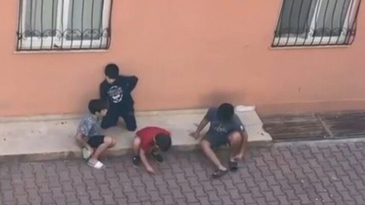 Yaşları 8 ile 10 arasında değişen çocukların ekonomi üzerine tartışma yaptığı anlar, karşı binada oturan bir vatandaşın kamerasına yansıdı.
