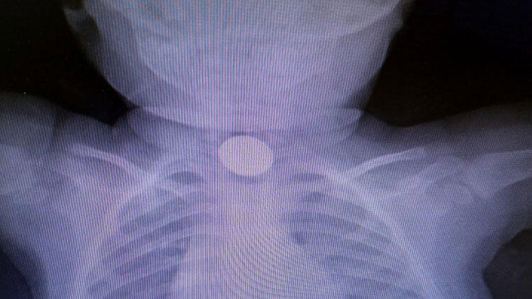 1 yaşındaki bebek 25 kuruş yuttu, doktor müdahalesi ile çıkarıldı