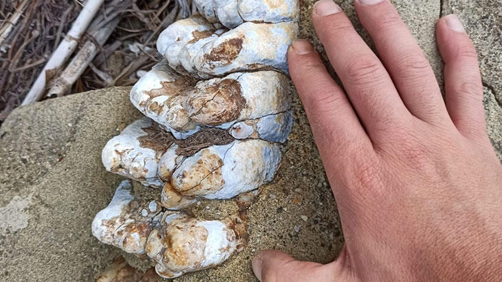 Çanakkale’nin Ezine ilçesine bağlı Yeniköy sahillerinde bir grup amatör balıkçı tarafından, yaklaşık 9 milyon yıl öncesine ait olduğu düşünülen mamut fosilleri bulundu. Sosyal medya üzerinden kurdukları amatör balıkçılık grubuyla Çanakkale’nin hemen hemen tüm sahillerinde balık avlayan bir grup genç, geçtiğimiz günlerde Yeniköy sahillerinde kayaların içerisinde bulunan fosilleri keşfedince durumu müze ve üniversite yetkililerine bildirdiler. Yapılan resmi yazışmaların ardından amatör balıkçılarla bölgeye giden Çanakkale Onsekiz Mart Üniversitesi (ÇOMÜ) Mühendislik Fakültesi Jeoloji Öğretim Üyesi Dr. Sevinç Kapan geniş çaplı araştırma başlattı.