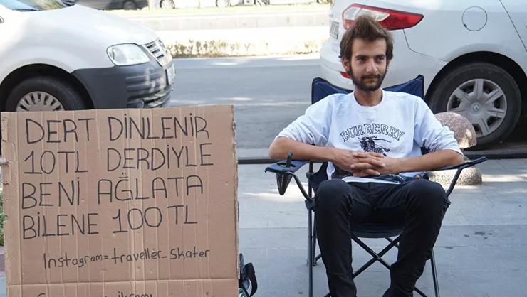 Türkiye’ye otostop ile şehir şehir gezen 22 yaşındaki Aytaç Şimşek, gittiği şehirlerde yüzlerce insanın derdini dinledi. Dert dinleme başına 10 TL alan genç, derdiyle kendisini ağlatana ise 100 TL veriyor.