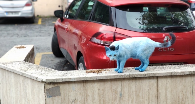 İstanbul Küçükçekmece Halkalı’da bir sitenin otoparkına kimliği belirsiz kişilerin döktüğü mavi boya yüzünden çevrede bulunan onlarca kedi maviye boyandı. Kedilerin görüntüsü çizgi film karakteri ‘Şirinleri’ anımsattı.