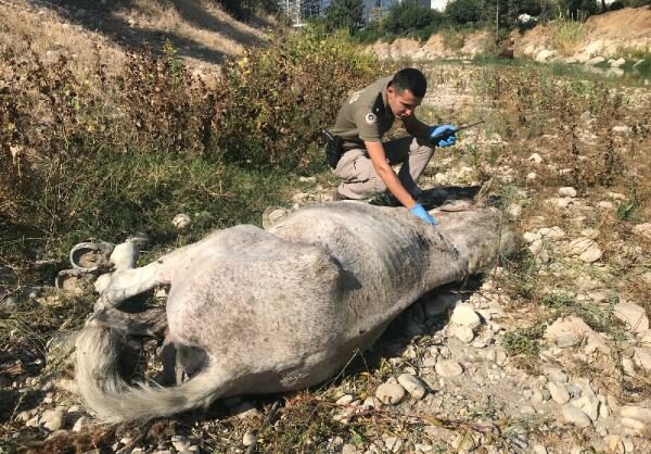 Mersin polisi, sahipleri tarafından dere yatağında ölüme terkedilen 2 atı, koruma altına aldı.